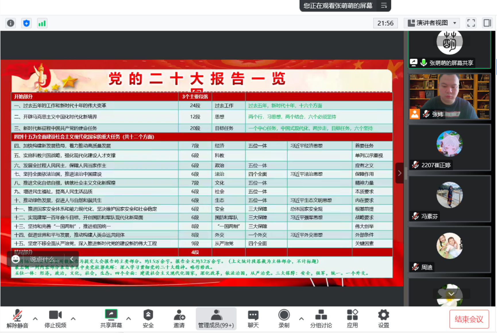 為進(jìn)一步推進(jìn)學(xué)習(xí)宣傳貫徹黨的二十大精神,促進(jìn)學(xué)校高質(zhì)量發(fā)展,加快建設(shè)高水平高職院校,12月30日上午9:30學(xué)校紀(jì)委書記張萌萌教授作了題為《學(xué)深悟透黨的二十大精神 奮力走好新時(shí)代新征程》的專題報(bào)告,基礎(chǔ)教育學(xué)院的全體教職工及學(xué)生干部共計(jì)120余人參加了本次宣講會(huì)。宣講會(huì)通過騰訊會(huì)議進(jìn)行。