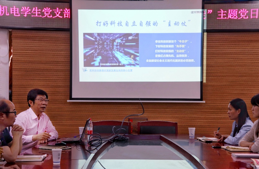為深入推進黨史學習教育,讓黨史學習入腦入心,使教師黨員堅守教育初心,勇擔育人使命,使學生黨員明理增信、崇德力行,機電學生黨支部于2021年6月2日下午邀請安江英校長為支部全體黨員講授了一次專題黨課,黨課主題是“打好科技自立自強的‘主動仗’,努力實現民族復興”。