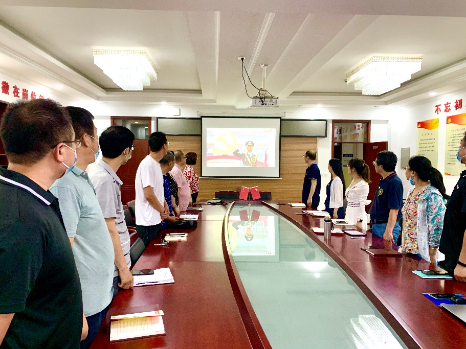 天安門廣場到處都是鮮花的海洋,紅旗迎風招展,人民英雄紀念碑北側的中國共產黨黨徽格外醒目,隨著100響禮炮響徹云霄,國旗護衛隊的官兵們護衛著鮮艷的五星紅旗行至升旗區,全場齊聲高唱國歌,而我們在會議室現場也起立同唱國歌。歌聲嘹亮,心情激蕩,每一個人心中都充滿了敬仰!