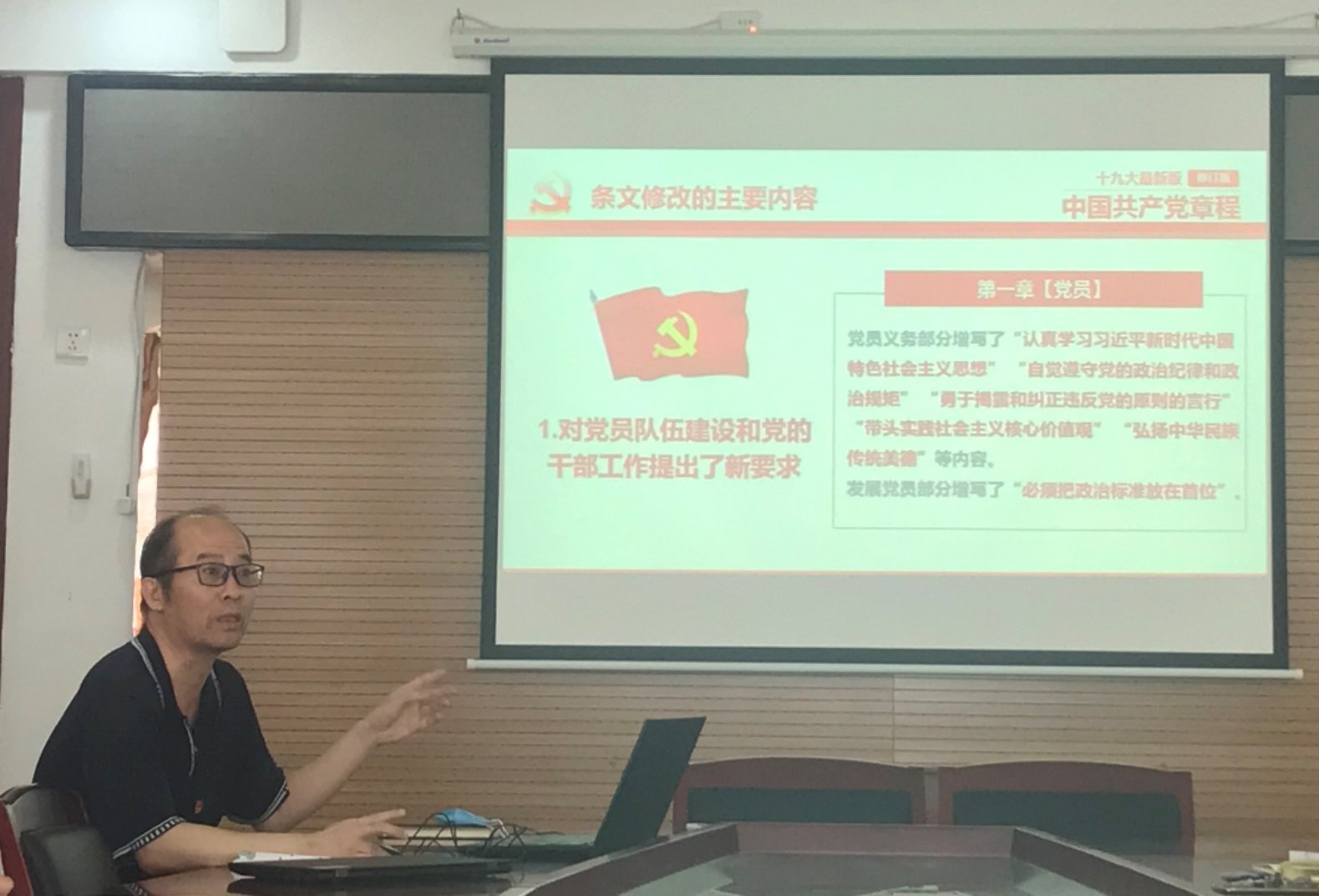 黨課的主題是:學(xué)黨章發(fā)展歷程、知黨情,堅(jiān)定信念跟黨走。在黨課中,王書記闡述了黨章的地位與意義,系統(tǒng)講解了建黨百年來黨章的發(fā)展歷程,帶領(lǐng)大家重點(diǎn)學(xué)習(xí)了十九大黨章修改的主要內(nèi)容。黨課最后,王書記引導(dǎo)大家進(jìn)一步明確“如何學(xué),怎么做”,號(hào)召全體黨員做樹立崇高理想信念的表率、做勤奮學(xué)習(xí)的表率、做愛崗敬業(yè)的表率、做遵守紀(jì)律的表率,同時(shí)針對(duì)在“雙高”建設(shè)和本職工作中,如何發(fā)揮共產(chǎn)黨員的先鋒模范作用,結(jié)合機(jī)電學(xué)院實(shí)際,也對(duì)全體黨員提出了具體要求。