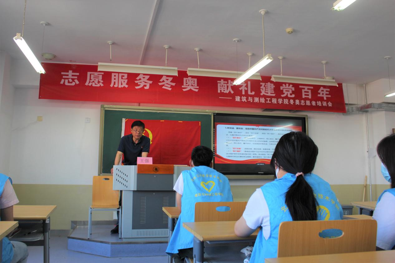 為做好建黨百年、冬奧環境建設志愿服務保障、文明城區創建等志愿服務工作,確保志愿者提供最優質的志愿服務,建筑與測繪工程學院積極響應號召,在學校黨委的領導下,堅決貫徹落實習近平總書記關于北京冬奧會、冬殘奧會籌辦工作的重要指示精神,深入推進我校冬奧會志愿者培訓工作,建筑與測繪工程學院于5月27日下午舉辦“志愿服務冬奧 以優異成績迎接建黨百年”黨課學習。