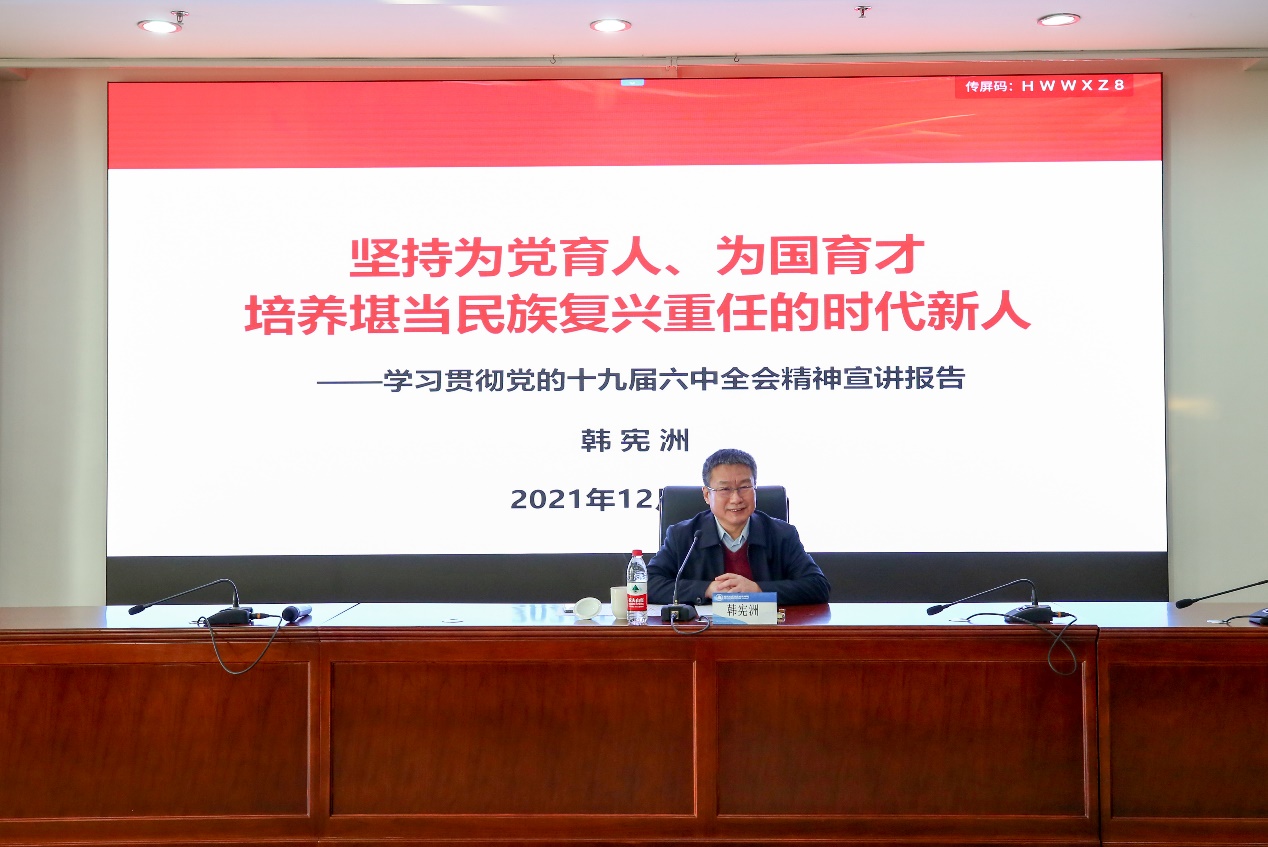 韓憲洲書記從“怎么看:深刻認識全會的重要意義”“怎么學:切實把握全會精神核心要義”“怎么做:為黨育人、為國育才”三個維度,對黨的十九屆六中全會精神進行了深入解讀和系統宣講。