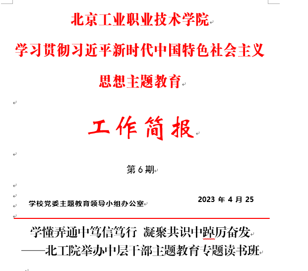 中共北京工業職業技術學院委員會主題教育領導小組辦公室2023年4月25日印