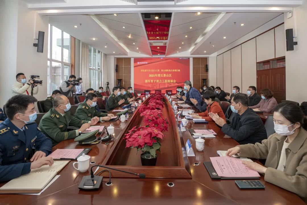 為深化強軍育才接力工程,助力部隊練兵備戰打贏,11月4日上午,石景山區人民政府、中部戰區政治工作部、陸軍政治工作部領導齊聚我校,召開強軍育才接力工程座談會并簽署了“強軍育才接力工程”四方協議書。