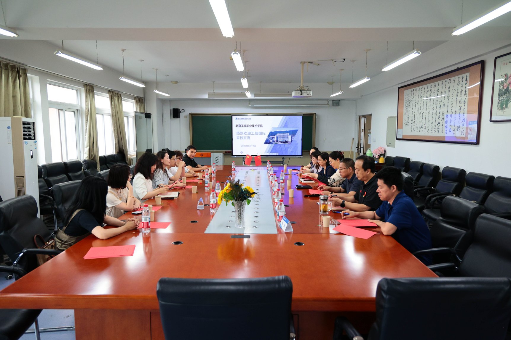 沈瑩代表學校向來訪客人表示歡迎,并簡要介紹了學校辦學情況及在產教融合、學生就業等方面取得的特色成果,包括校企合作模式創新、實訓基地建設、畢業生就業率提升等亮點工作。國際交流合作處處長孟晴介紹了學校近年來開展國際交流與合作的相關情況,重點介紹了學校服務中資企業“走出去”,在職教出海等方面所做的創新實踐與探索。