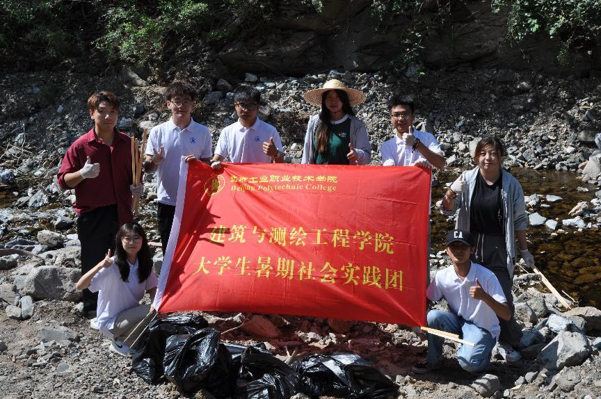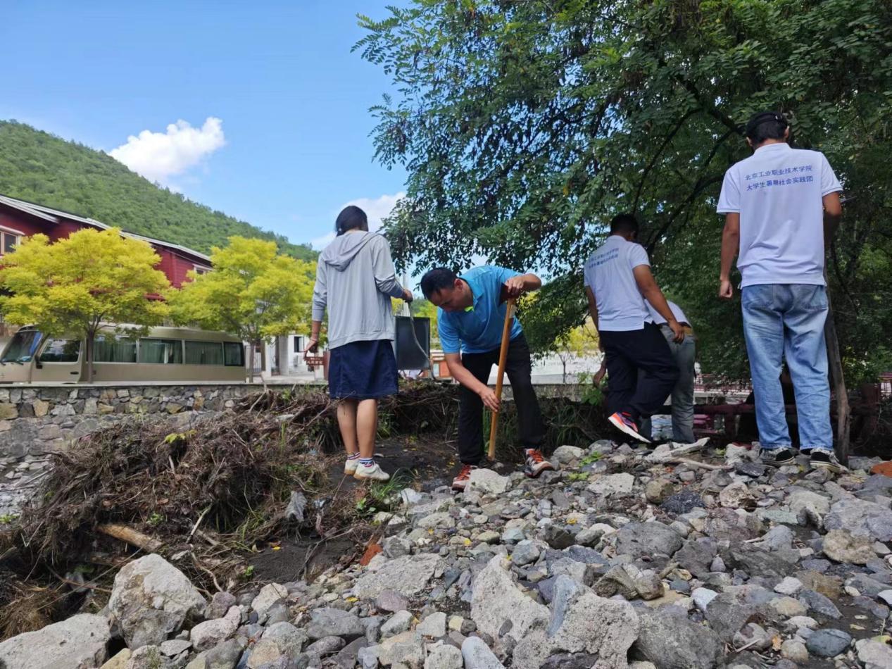 座談會結束后,建工學生黨支部書記高歌老師率領著實踐團為小龍門村清理河道垃圾。