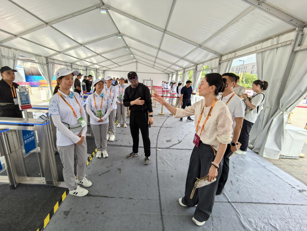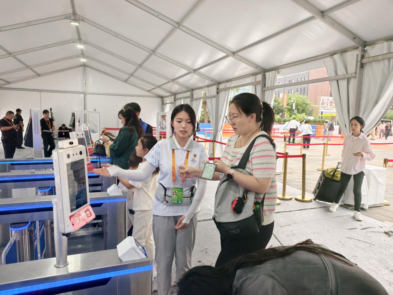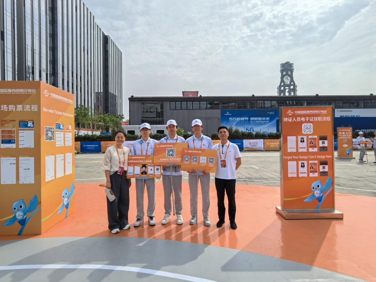 本次服貿會,我校志愿者承擔了為參觀人員提供刷臉入場線路引導、乘車指引、信息咨詢、路線引導等志愿服務。志愿者們有序分布于入場通道,高效開展入場核驗、人流引導、證件檢查等關鍵環節工作。從耐心協助觀眾驗票入場,到配合公安部門進行人證一致性核驗,志愿者們用專業的服務和溫暖的笑容,有效保障了入場流程的順暢有序,成為服貿會現場一道亮麗的“青春風景線”。