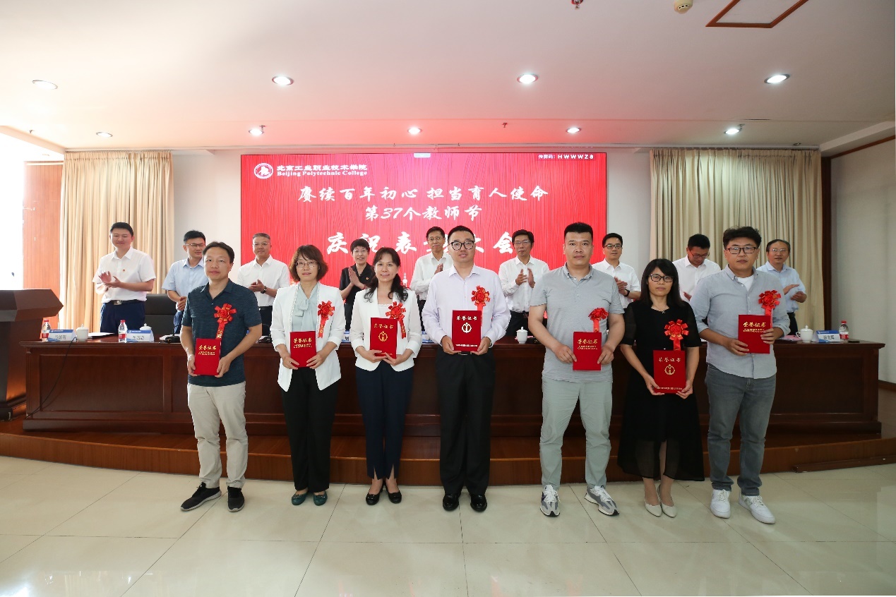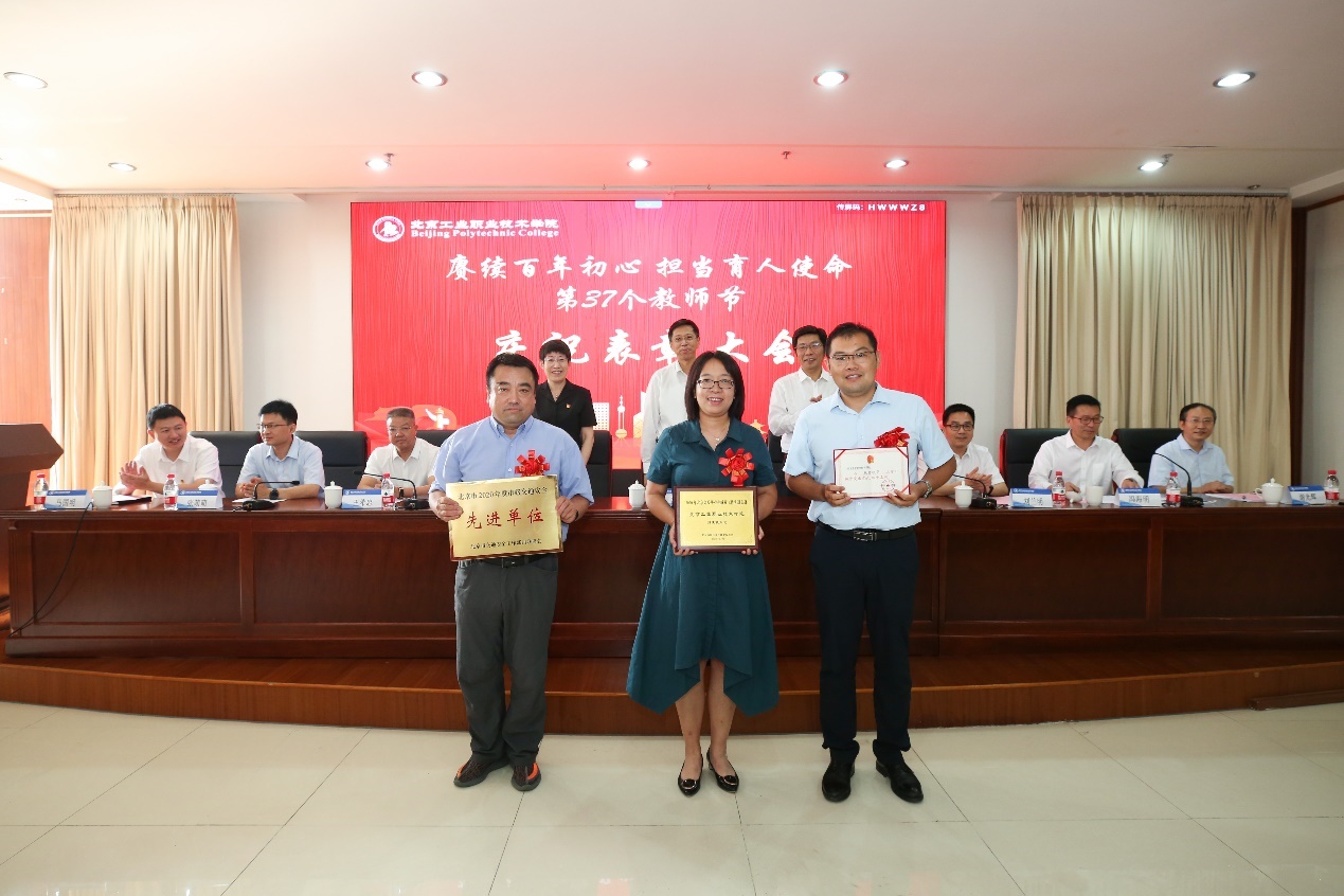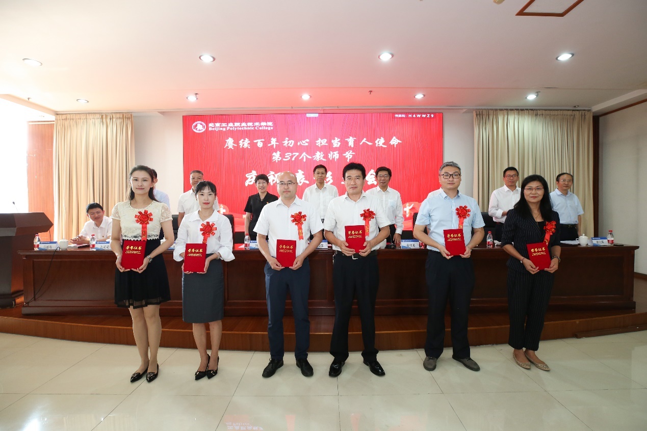 9月10日下午,我校在匠心樓3層報告廳隆重舉行第37個教師節(jié)慶祝表彰大會。今年教師節(jié)的主題是“賡續(xù)百年初心 擔(dān)當(dāng)育人使命”。黨委書記高喜軍同志,黨委副書記、校長安江英同志,黨委常委、副校長周燕同志,黨委常委、副校長劉蘭明同志,黨委常委、副校長、工會主席王希忠同志,黨委常委、紀(jì)委書記張萌萌同志,黨委常委、校長助理謝光輝同志,校長助理馬國明同志等出席了大會。參加本次大會的還有中層干部代表、教職工代表及新入職教職工。會議由黨委常委、副校長馮海明同志主持。