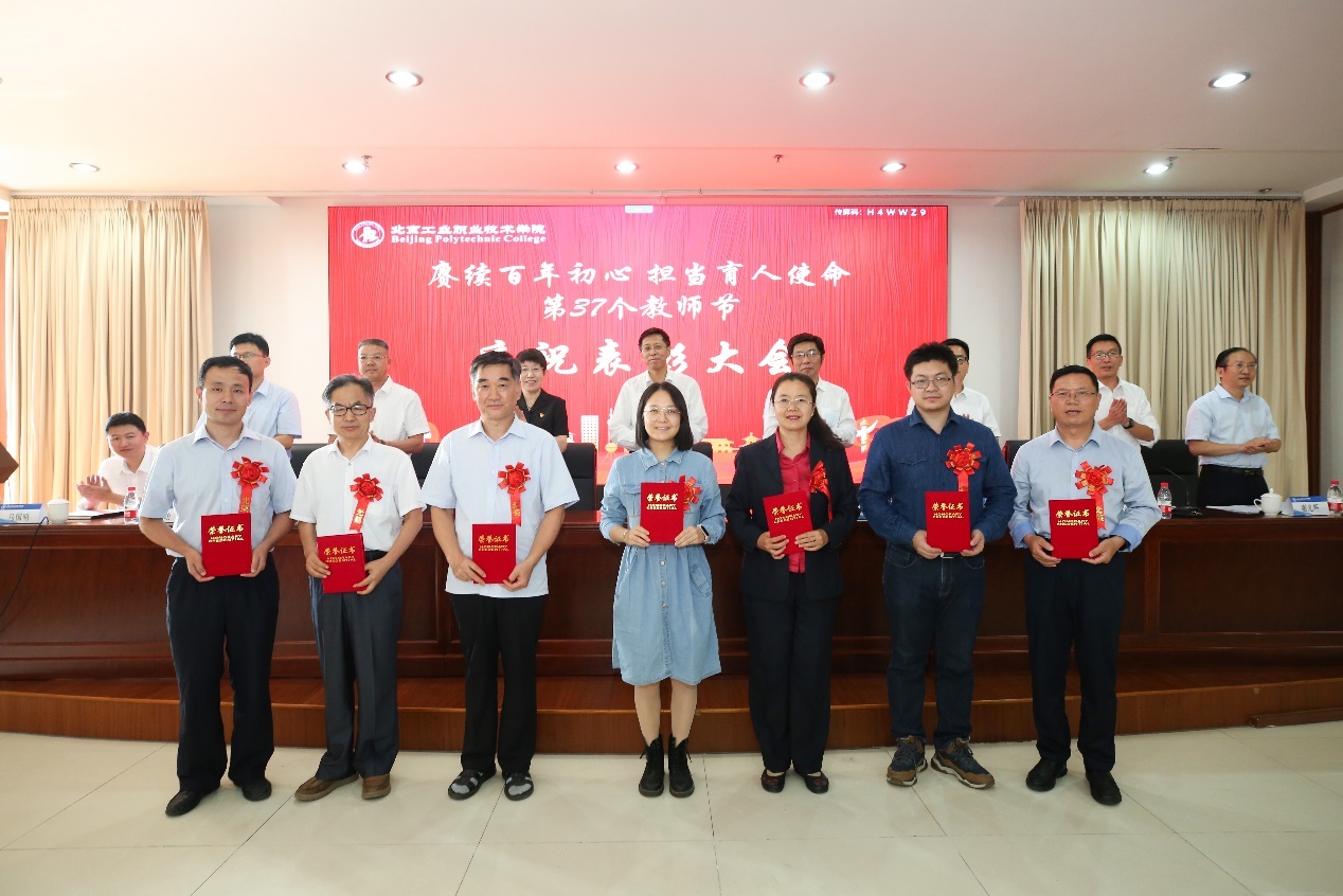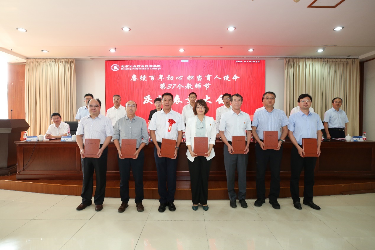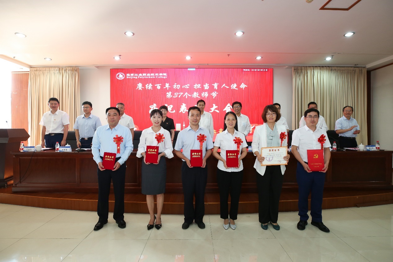 9月10日下午,我校在匠心樓3層報告廳隆重舉行第37個教師節(jié)慶祝表彰大會。今年教師節(jié)的主題是“賡續(xù)百年初心 擔(dān)當(dāng)育人使命”。黨委書記高喜軍同志,黨委副書記、校長安江英同志,黨委常委、副校長周燕同志,黨委常委、副校長劉蘭明同志,黨委常委、副校長、工會主席王希忠同志,黨委常委、紀(jì)委書記張萌萌同志,黨委常委、校長助理謝光輝同志,校長助理馬國明同志等出席了大會。參加本次大會的還有中層干部代表、教職工代表及新入職教職工。會議由黨委常委、副校長馮海明同志主持。