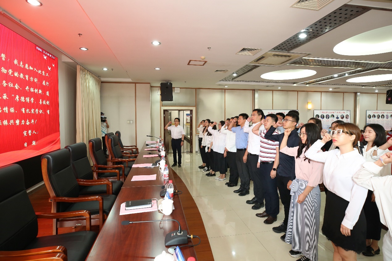2020-2021學(xué)年,學(xué)校迎來了26名新教師,為引導(dǎo)新教師牢記“為黨育人 為國育才”初心使命,學(xué)校為全體新教師舉行了莊嚴(yán)的宣誓活動。校黨委常委、副校長劉蘭明領(lǐng)誓,26名新教師莊嚴(yán)許下承諾。