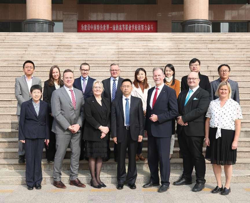柳長安代表我校對芬蘭校長聯盟代表團的到來表示熱烈歡迎,并簡要介紹了學校國際化辦學情況。他談到,芬蘭是中國重要的教育合作伙伴,在職業教育領域擁有豐富的經驗。今年5月,習近平主席訪問法國期間提出“歐洲翻番”重要倡議,即推動未來三年內歐洲青少年來華交流規模翻一番。今年10月,中國教育部副部長陳杰訪問芬蘭并與芬蘭教育和文化部副部長尼蘭德會談,在推動落實“歐洲翻番”重大倡議,深化高等教育、基礎教育、職業教育、數字教育合作以及共同參與全球教育治理等方面達成系列共識。他表示,芬蘭總統斯圖布目前正在中國訪問,代表團于此時來訪,我們相信會對兩國教育領域合作帶來深遠影響。衷心希望雙方以此次交流為契機,未來能與芬蘭校長聯盟代表團各成員高校與芬蘭知名企業,在合作辦學、校企合作等方面開展更深層次的交流與合作。進而為中芬教育合作和人文交流注入新的活力,為推動兩國之間的友好關系和互利共贏作出積極貢獻。