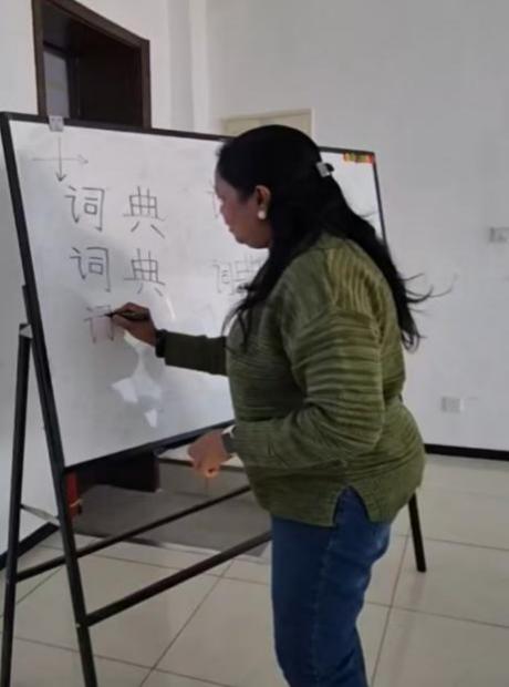學員體驗具身機器人中文課上書寫漢字