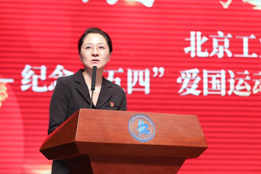 表彰大會在國歌聲中拉開帷幕,黨委常委、副院長沈瑩代表學校向受表彰的先進集體和個人表示熱烈的祝賀!向在座的青年朋友和長期以來致力于青年事業的同志們致以最誠摯的問候和衷心的感謝!她在講話中談到,2023年是“十四五”規劃和全面開啟社會主義現代化建設新征程的重要之年,也是紀念“五四”愛國運動104周年,在這個具有特殊意義的歷史時刻,我們紀念五四運動,重溫光輝歷程,傳承五四精神!沈瑩副院長結合習近平總書記給中國農業大學科技小院的學生回信精神向同學們提出了四點希望,一是加強習近平新時代中國特色社會主義思想學習,讓理想信念在學習中不斷堅定;二要樹立報國之志,讓愛國主義精神在心中牢牢扎根;三要錘煉品德本領,讓青年之力在砥礪奮進中淬煉成鋼;四要擔當時代責任,讓青春之花在黨和人民最需要的地方綻放。最后,她激勵同學們發揚“團結拼搏、求實創新”的北工院精神,為建設特色鮮明世界一流的高職院校而努力奮斗!厚植愛黨、愛國、愛社會主義的情感,讓紅色基因、革命薪火代代傳承,為全面建設社會主義現代化國家、實現中華民族偉大復興中國夢努力奮斗!