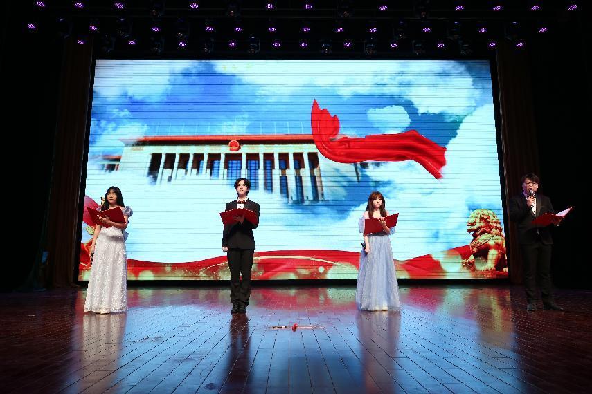 話劇《覺醒》重現了1919年五四運動中的一幕幕場景,團員青年們激昂的斗志,贏得了現場觀眾的陣陣掌聲。配樂朗誦《青春》、朗誦《五四永不熄》展現了當代青年心系祖國富強、胸懷民族復興的新時代風貌及奮斗精神。文藝匯演的最后,全場師生起立,一起唱響《我和我的祖國》,用嘹亮的歌聲抒發對黨的熱愛,用真摯的情感表達永遠跟黨走的決心。