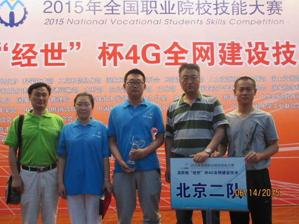 4G賽項一等獎“三連冠”。2013年通信專業(yè)賽隊獲常州信息職業(yè)技術學院承辦的全國職業(yè)院校“LTE組網(wǎng)與維護”賽項一等獎;2014年獲天津輕工職業(yè)技術學院承辦的全國職業(yè)院校”基站建設維護及數(shù)據(jù)網(wǎng)組建”賽項;2015年獲南京信息職業(yè)技術學院承辦的全國職業(yè)院校“4G全網(wǎng)建設技術”賽項一等獎。