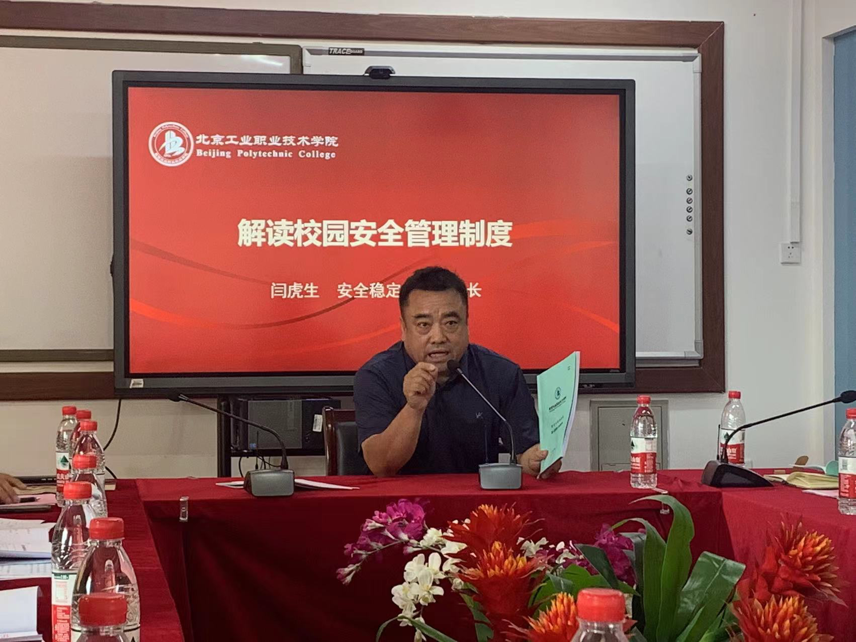 安全穩定工作處處長閆虎生解讀了學校《校園安全管理制度》,并就做好暑期校園安全穩定工作做了部署。