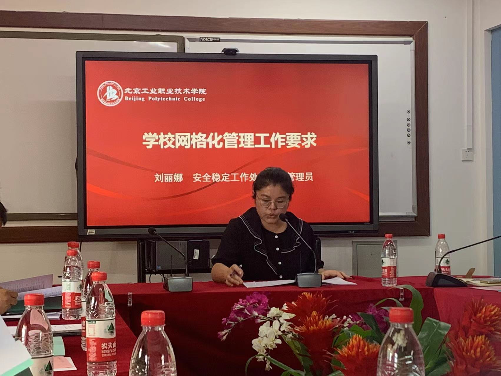 安全穩定工作處網格化管理員劉麗娜講解學校網格化管理工作要求,要求各部門(單位)更新完善網格信息,明確相關責任人,共同做好學校安全工作。