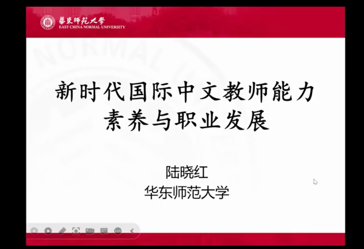 華東師范大學(xué)國際漢語文化學(xué)院的陸驍紅副教授則帶來的是主題為新時代國際中文教師能力素養(yǎng)與職業(yè)發(fā)展,課程圍繞新時代國際中文教師能力素養(yǎng)和職業(yè)發(fā)展。著重提升職業(yè)院校參與國際中文教師的課堂教學(xué)能力,教學(xué)反思能力,溝通合作能力和教育研究能力的提升。