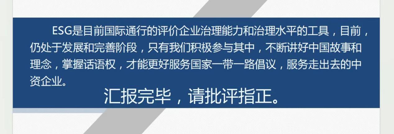 北方礦業(yè)有限責(zé)任公司安全環(huán)保部主任助理周旭工程師,對職業(yè)健康安全環(huán)保管理體系有著深入的研究,具有豐富的海外工作理論和實踐經(jīng)驗,熟悉國際通行HSE、CSE和ESG等體系。他所帶來的培訓(xùn)內(nèi)容為境外企業(yè)HSG管理要求和實踐概述。著重針對海外中資企業(yè)面臨的發(fā)展制約問題解決方法,助力中資企業(yè)提升管理水平和生產(chǎn)效益。