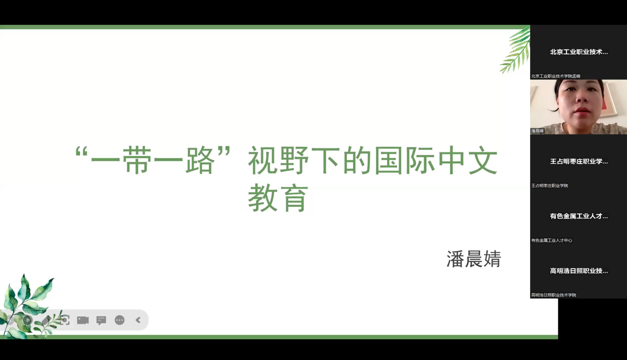 中國人民大學(xué)國際文化交流學(xué)院的潘晨靖副教授則圍繞“一帶一路”視野下的國際中文教育結(jié)合了目前最新的相關(guān)研究和論文向參加培訓(xùn)的學(xué)員們介紹了目前“一帶一路”下的國際中文發(fā)展情況、漢語國際教育推廣體系以及國際中文教育所面臨的問題。并且針對職業(yè)院校目前開展的“中文+職業(yè)技能”項目提出了對教育模式適應(yīng)性、教育體系建設(shè)、師資隊伍建設(shè)和加強職業(yè)中文標(biāo)準(zhǔn)引領(lǐng)等方面提出了改進(jìn)建議。