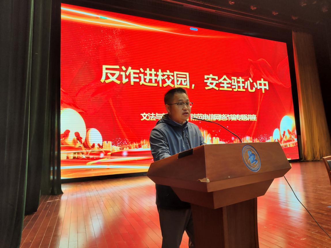 為貫徹落實總體國家安全觀,進一步強化學生安全意識,結合近期高校詐騙案件頻發,為切實提高學生反詐防騙意識,遏制校園詐騙高發態勢,有效保護學生生命財產安全,幫助廣大學生鑄就防詐長城、擦亮識騙慧眼,我校于4月14日至18日,針對各學院學生特點,結合真實案例專題開展5場“反詐進校園,安全駐心中”主題講座。