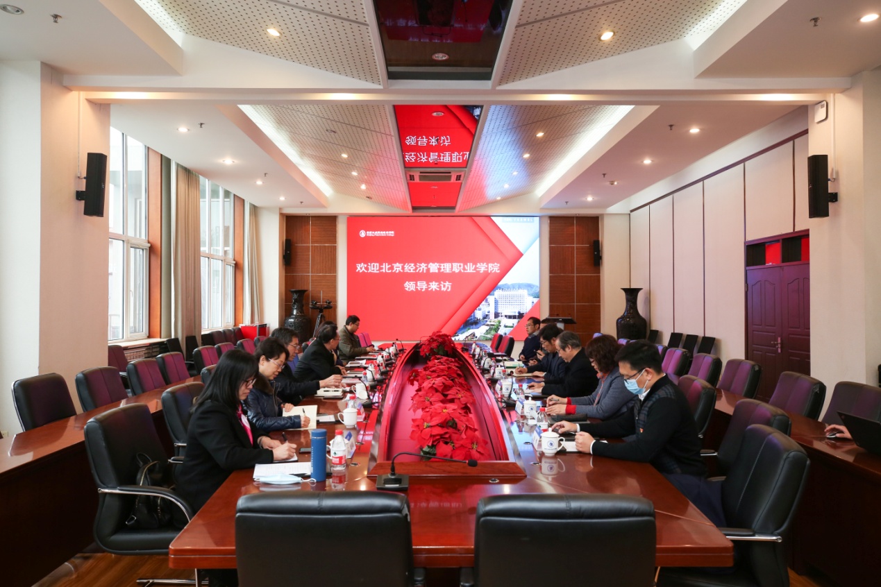 12月2日,北京經濟管理職業學院院長姚光業等一行7人到我校考察交流,我校黨委副書記、校長安江英,黨委常委、校長助理謝光輝,黨政辦公室、教務處、審計處及相關二級學院負責人參加了座談會。
