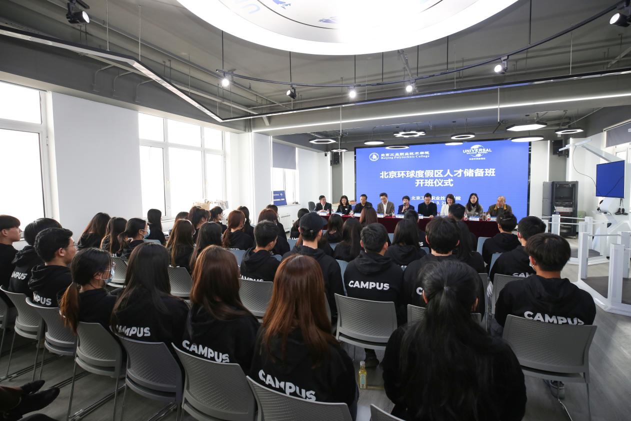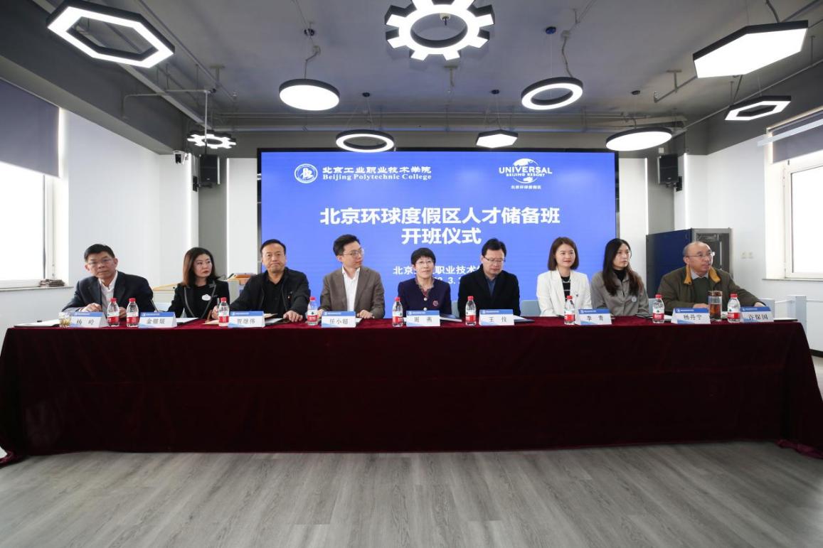 學校黨委常委、副院長周燕,教務處處長王佼,招生就業處處長賀繼偉,文法與管理學院黨總支書記楊嶺、院長許保國、副書記張軍、副院長黃玉芬,北京環球度假區人力資源總監任小超、校企關系經理金銀姬、人才招聘副經理楊丹寧、校園顧問李青出席了開班儀式。