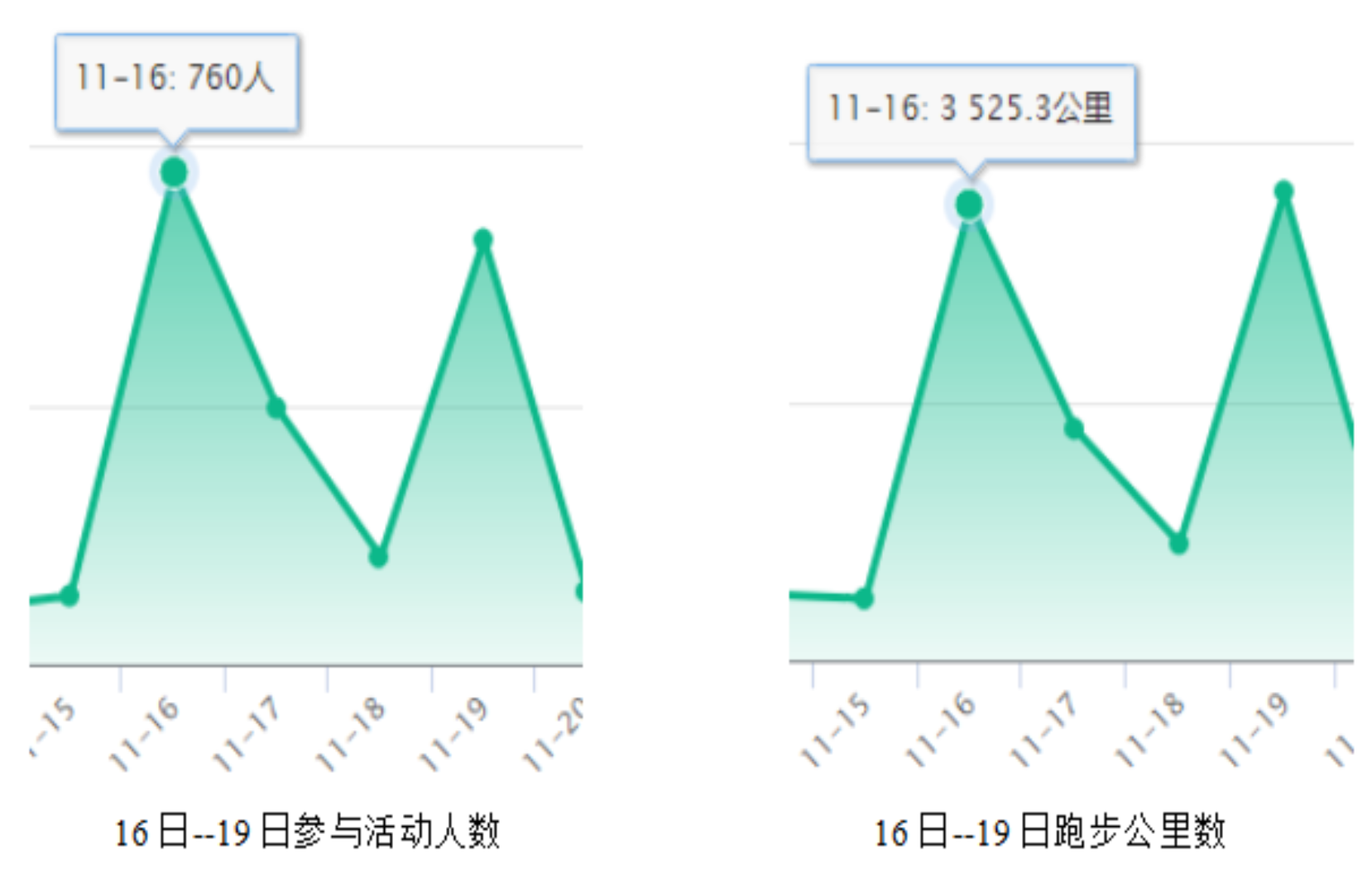 本次活動由體育部與學工處聯合舉辦,為保障本次比賽的公平性,每日學校派出了保安工作人員在田徑場進行執勤。全校共計1978人有效參與到了本次長跑活動,活動人次達到2530頻次,跑步總公里數達到9849.56公里。經過此次活動利用“計分跑”加倍獎勵模式充分激起了同學們跑步的積極性,從活動開啟前,APP長跑學期達標率的57%增長到了目前的71%。