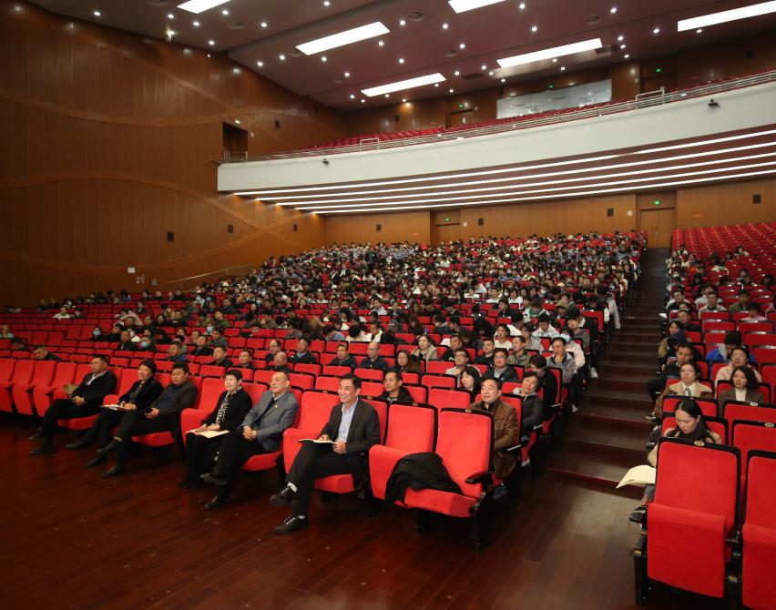 全體校領導、中層干部、二級黨組織書記、黨支部書記、教研室主任、優青骨干、青馬班學員、學生代表等參加報告會。