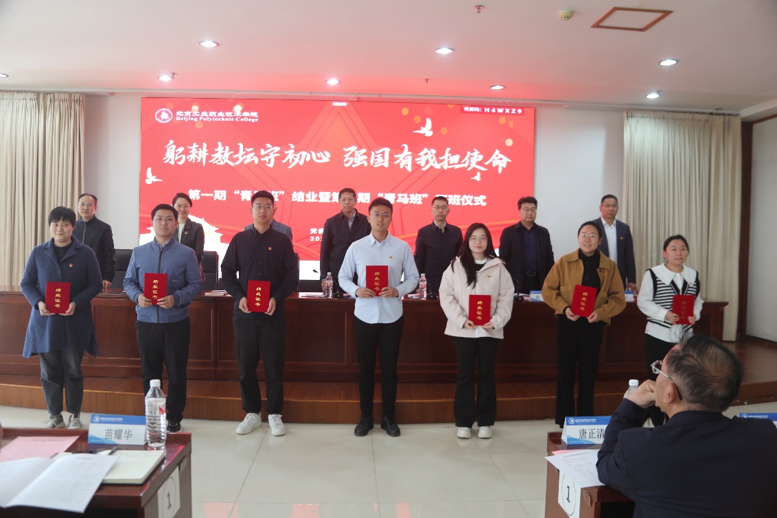 為加強教師隊伍思想政治建設,4月9日下午,北京工業職業技術學院舉行教師“青馬工程培訓班”第1期結業暨第2期開班儀式。黨委書記高喜軍出席并講授開班第一課,黨委副書記、院長柳長安出席并講話,黨委副書記魏曉東主持儀式。其他校領導、黨委職能部門、馬克思主義學院相關負責人以及各二級黨組織書記、副書記、黨建組織員、青馬班第1期和第2期學員參加。