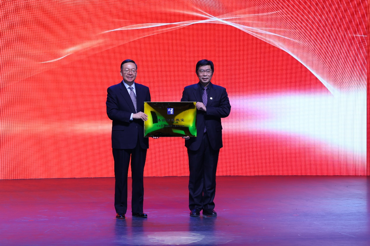 我校安江英校長受邀出席開幕式。本次交流周活動首次設(shè)立“語合智慧教室”項目,我校協(xié)同有色金屬行業(yè)及國內(nèi)其他職業(yè)院校共同“走出去”,建立了第一所以學(xué)歷教育為主的海外職業(yè)技術(shù)學(xué)院——中國—贊比亞職業(yè)技術(shù)學(xué)院(以下簡稱中贊職院),日前中贊職院獲批了“語合智慧教室”項目。啟動儀式上教育部田學(xué)軍副部長向?qū)W校授牌,安江英校長代表學(xué)校接受了“語合智慧教室”牌匾。授牌儀式結(jié)束后,中外嘉賓一起上臺攜手推動啟動桿,共同啟動2021國際中文教育交流周。