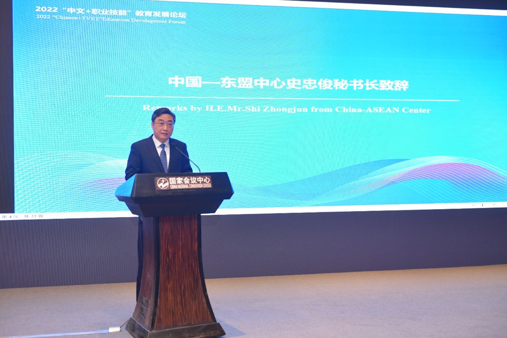 史忠俊在致辭中表示,教育是促進人類社會發展的重要力量。近年來,職業教育成為世界各國普遍關注的熱門話題,在消除貧困、增加就業、提高勞動者技能、服務產業升級、維護全球產業鏈供應鏈穩定中發揮著重要作用。中國—東盟中心愿與教育部語合中心及有關各方一道,推動雙方職業教育交流合作向縱深發展,攜手構建“后疫情”時代職教交流合作長效機制,提升各國職業院校國際化辦學水平和核心競爭力,為服務經濟社會發展和促進民心相通做出更大貢獻。