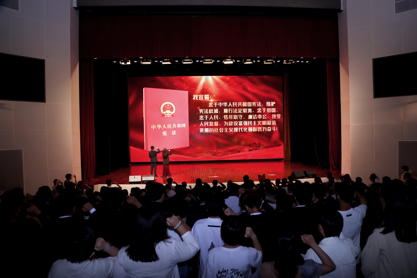 期間舉行憲法宣誓環節。家長和學生閱讀《給彼此的一封信》。紙短情且長,誠意勝千言。很多父母會把愛藏在心里,也許在書信中他們只字不提愛,但生活里處處都是愛。正如學子們在書信中所寫,“一路跌跌撞撞的走來,少不了父母的辛苦勞累和精心呵護,更少不了他們的日夜陪伴與支持,還有那些帶我走進知識海洋的恩師們,陪伴我前行的伙伴們,謝謝他們在我成長的道路中,不離不棄,教我成長!”