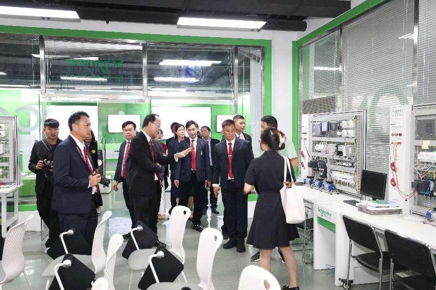 隨后,代表團在高世吉陪同下,實地參觀了中法能效應用人才培養與研究中心、汽車實訓基地、3D打印實訓中心、智能機器人實訓室及北斗時空信息實訓基地。代表團成員對我校理實一體化的教學模式、先進的教學設備和良好的實踐教學環境給予高度評價。