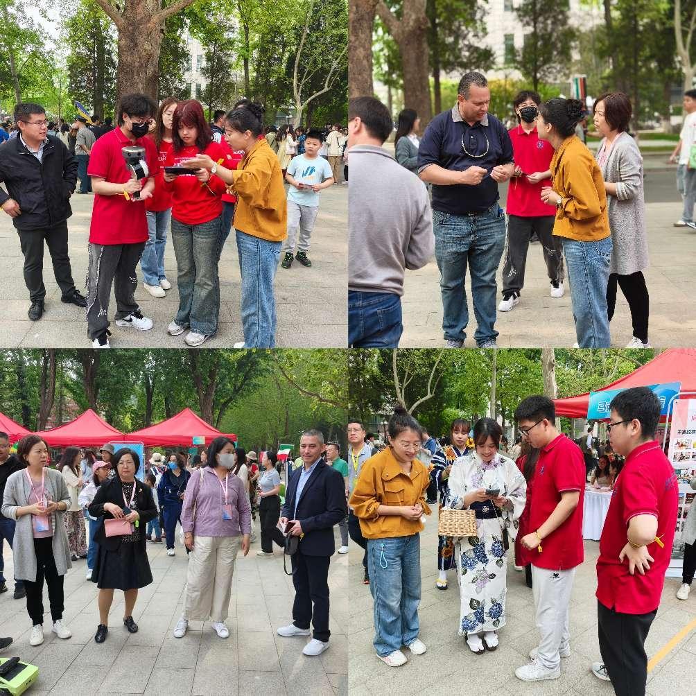春風和煦,綠意盎然,第十九屆世界文化節游園會于4月27日在北京語言大學盛大開幕,來自103個國家和地區的青年及社會各界人士同聚北語,感受文化交融的無限魅力,聆聽世界脈動的和諧樂章。我校受邀參加文化節并與北京語言大學應用中文學院共同展示雙方合作項目——“中文+職業技能”特色項目。北京語言大學黨委書記倪海東、應用中文學院書記周鑫、應用中文學院院長蘇英霞等領導蒞臨展位,駐足觀看我校職業技能展示,并表示將一如既往繼續支持兩校“中文+職業技能”合作項目。