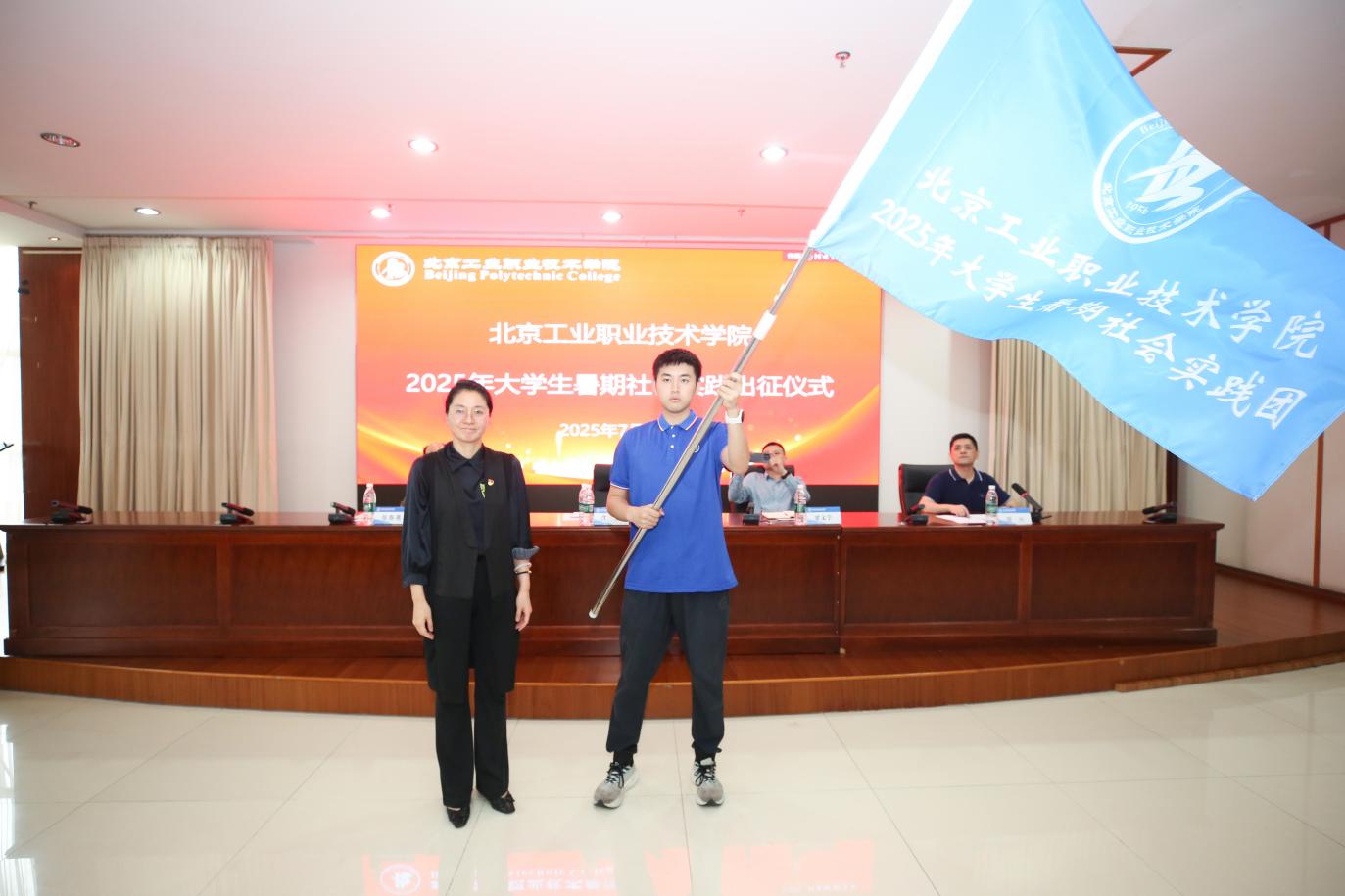 沈瑩為2025年大學(xué)生暑期社會(huì)實(shí)踐團(tuán)授旗,實(shí)踐團(tuán)接過(guò)旗幟,昂揚(yáng)出征,他們將在中國(guó)式現(xiàn)代化的火熱實(shí)踐中展現(xiàn)青春作為、彰顯青春風(fēng)采、貢獻(xiàn)青春力量。