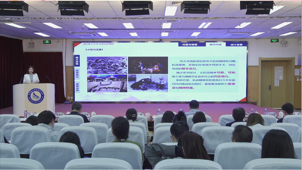 李楊老師以《追憶烽火歲月 弘揚抗戰精神》為題,構建了“歷史·時代·未來”三維教學場景,通過生動具象的歷史案例,強烈的歷史與現實對比,高度參與的互動探究等設計,講透抗戰精神的深刻內涵,講活抗戰精神在當代的傳承與發展,講明青年一代踐行抗戰精神的實踐路徑,讓學生深入理解抗戰精神的形成與核心要義,深刻認同其作為民族精神瑰寶的時代價值,自覺擔當起傳承與踐行的青春使命。