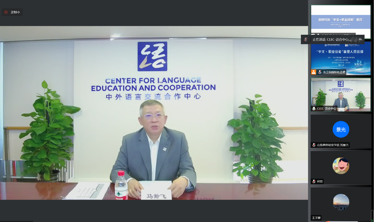 為貫徹落實中共中央辦公廳、國務院辦公廳印發《關于推動現代職業教育高質量發展的意見》,推動國際中文教育與職業教育“走出去”融合發展,構建“中文+職業技能”教育高質量發展新體系,5月17日至18日,北京工業職業技術學院“中文+職業技能”教育實踐與研究基地舉辦了“中文+職業技能”管理人員線上培訓,來自全國各地87所職業院校的262名校領導、國際處室負責人和教師參加了培訓。