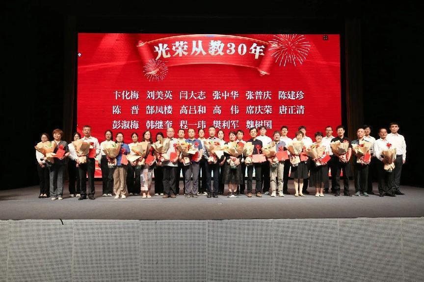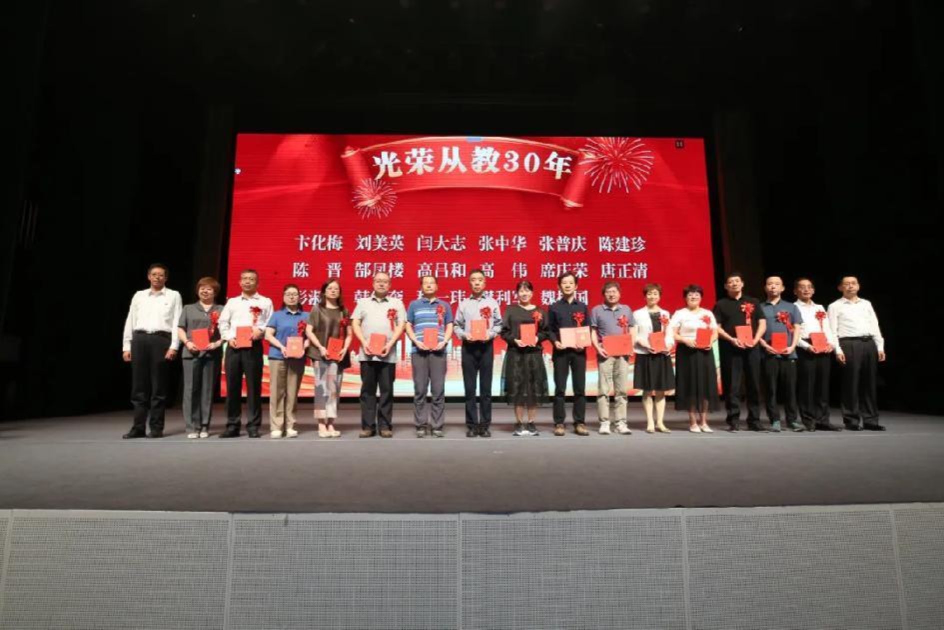 會上,黨委書記高喜軍、院長柳長安為從教30年教職工頒發榮譽證書,新教師代表向從教30年教職工獻花。