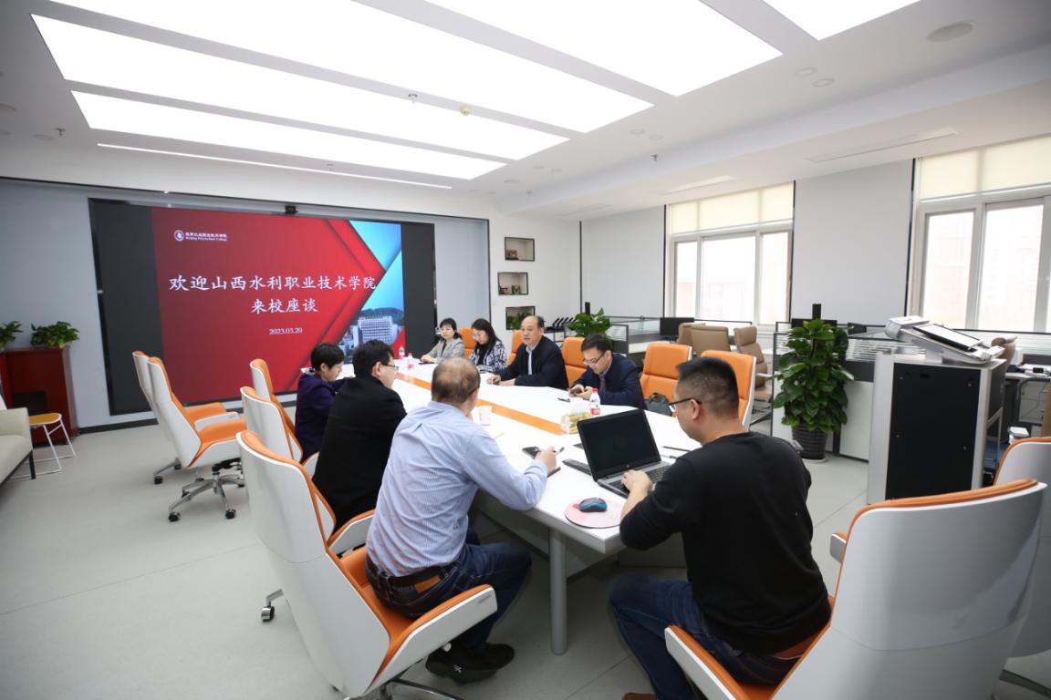 隨后,雙方在匠心樓三層會議室進行座談。周燕副院長對山西水利職業技術學院來訪表示熱烈歡迎,并從學校簡介、國際化辦學、職業教育“走出去”路徑創新、“中文+職業技能”教育實踐與研究基地四個方面介紹學校辦學情況和國際交流合作的典型經驗做法。教務處處長王佼介紹了學校近幾年取得的標志性教學成果。周燕副院長表示,北京工業職業技術學院近年來發展迅速,形成了鮮明的辦學特色。山西水利職業技術學院是山西職業教育的排頭兵,雙方應該加強交流,互學互鑒,共促發展。
