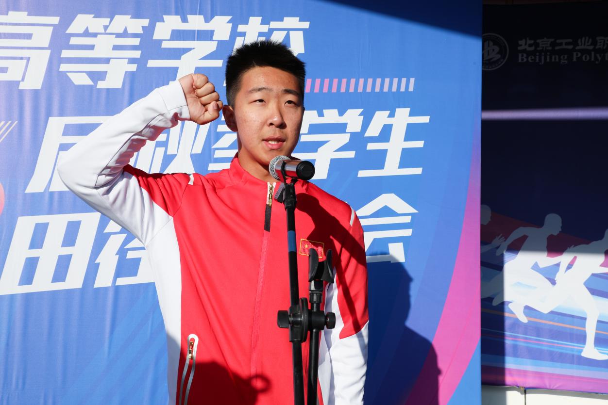 柳長安代表學校致歡迎辭,向蒞臨盛會的各級領導、嘉賓及參賽高校師生表示熱烈歡迎,向長期支持學校發展的各界人士和賽事籌備人員致以誠摯感謝。他介紹,作為全國職業教育改革的先行者,學校首期國家“雙高”建設、北京市“特高”建設均以“優秀”等次通過驗收,現已入選國家“雙高”第二期建設單位,連續三年在市屬高校分類發展績效考核中榮獲“優秀”,有信心呈現一場“安全、有序、精彩、難忘”的體育盛事。他表示,首都高校秋季學生田徑運動會歷經16載傳承,已成為展示體育育人成果、促進校際交流融合的重要平臺。本屆賽事,眾多高等職業院校的健兒們與普通本科院校的同學們同場競技,這充分體現了職業教育與普通教育相互融通、共同發展的時代趨勢。他鼓勵運動員發揚“更高、更快、更強、更團結”的奧林匹克精神,展現當代大學生的蓬勃朝氣。