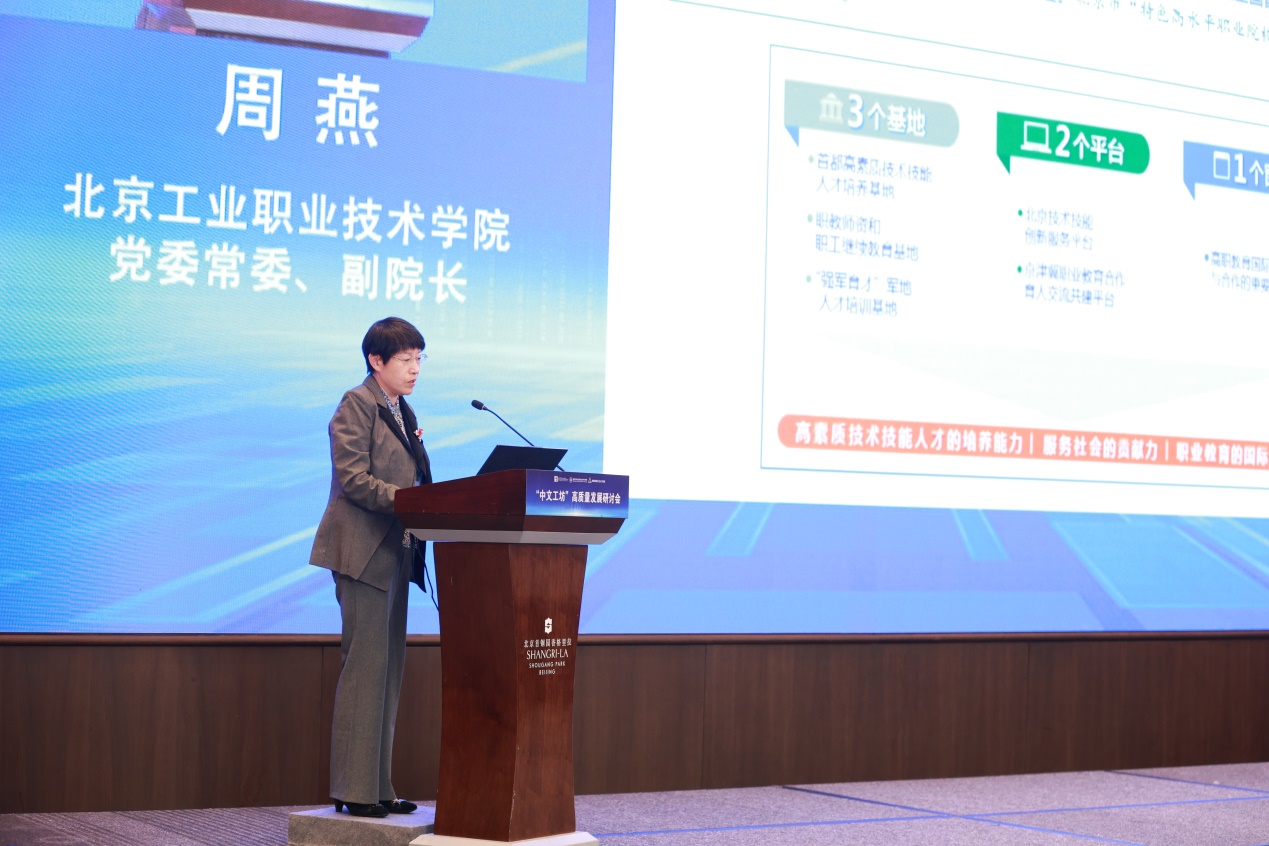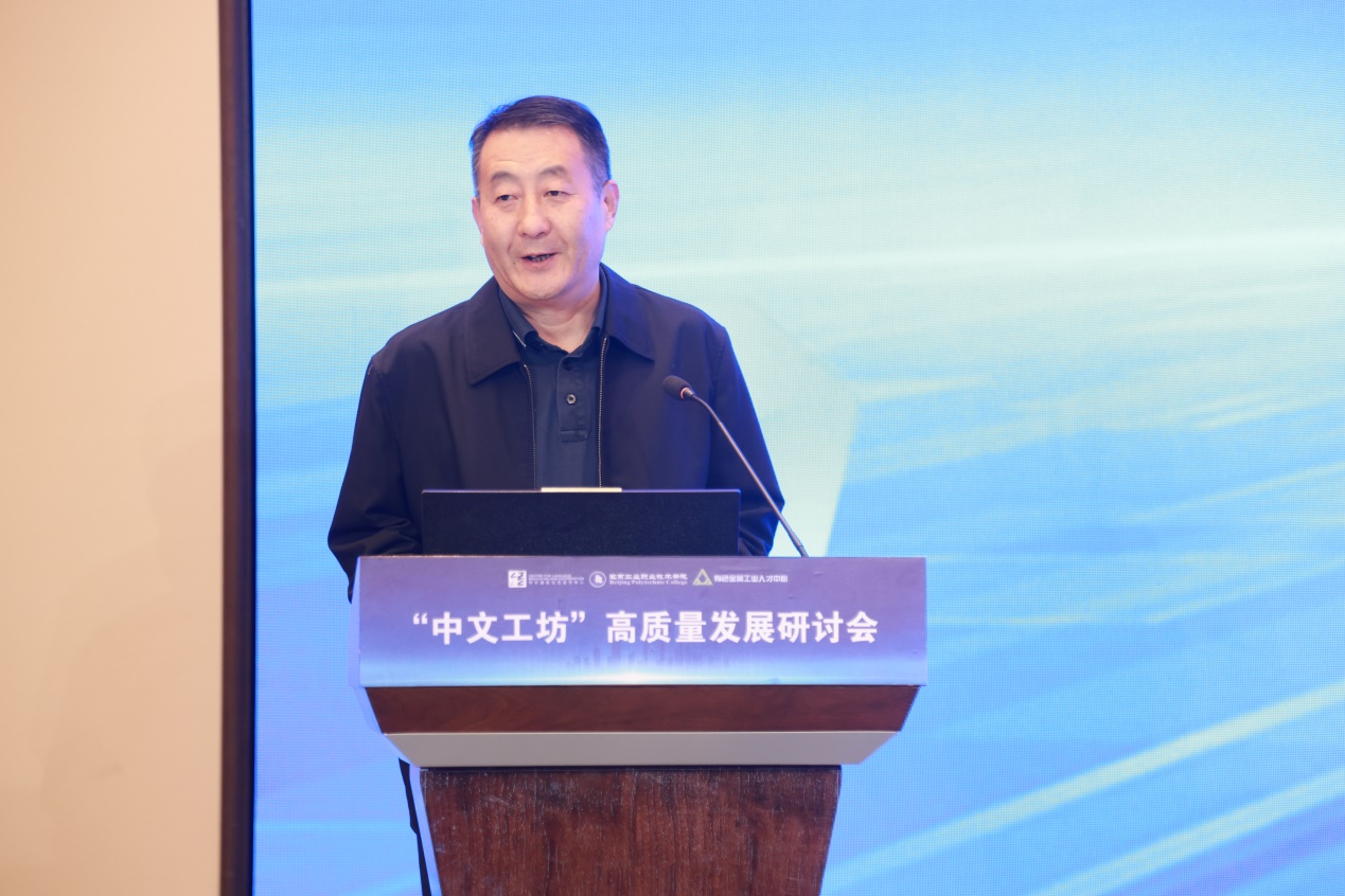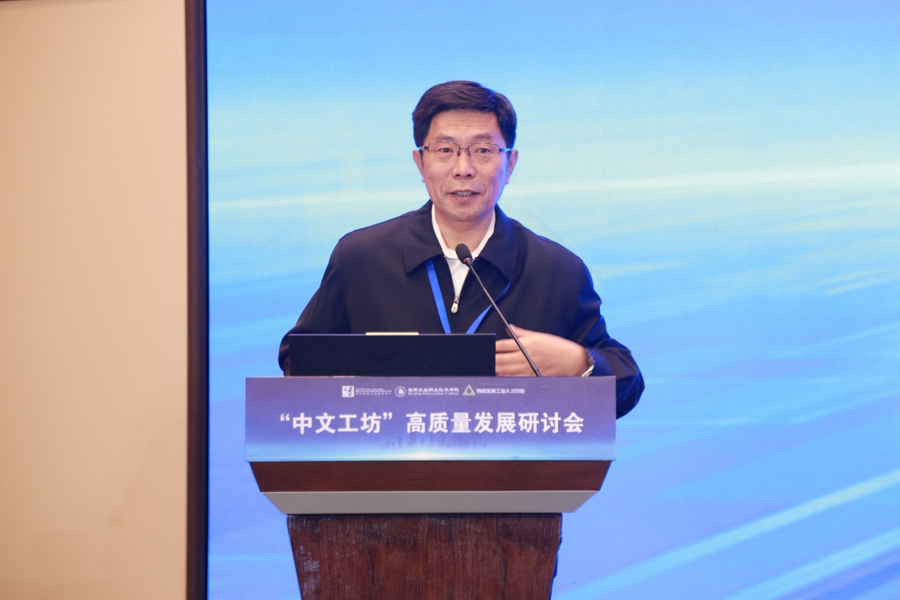 2023年10月23日,由教育部中外語(yǔ)言交流合作中心指導(dǎo)(以下簡(jiǎn)稱“語(yǔ)合中心”)、北京工業(yè)職業(yè)技術(shù)學(xué)院主辦、有色金屬工業(yè)人才中心協(xié)辦的“中文工坊”高質(zhì)量發(fā)展研討會(huì)在首鋼園召開(kāi)。教育部語(yǔ)合中心副主任胡志平、教育部語(yǔ)合中心亞非處高級(jí)項(xiàng)目主管吳磊、教育部職業(yè)教育發(fā)展中心國(guó)際合作與交流處負(fù)責(zé)人鄭堅(jiān)副研究員、有色金屬工業(yè)人才中心黨委書(shū)記、主任謝承杰、有色金屬工業(yè)人才中心黨委副書(shū)記、副主任宋凱、北方礦業(yè)有限責(zé)任公司總經(jīng)理助理徐敬元、北京師范大學(xué)宋繼華教授等領(lǐng)導(dǎo)及專家以及來(lái)自全國(guó)21家“中文工坊”的參建院校及企業(yè)代表應(yīng)邀出席。我校黨委副書(shū)記、院長(zhǎng)安江英,黨委常委、副院長(zhǎng)周燕及相關(guān)人員共同出席本次研討會(huì)。本次研討會(huì)以線上線下同步的方式舉行,會(huì)議由我校副院長(zhǎng)周燕主持。