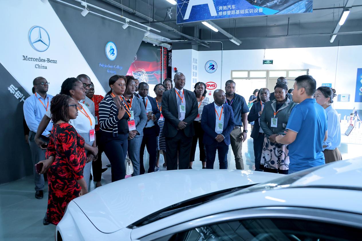 贊比亞青年與文體部人力資源與行政司司長(zhǎng)韋齊·盧赫萊代表訪問(wèn)團(tuán)發(fā)表講話。他談到,贊比亞與中國(guó)的良好雙邊關(guān)系始于1964年。過(guò)去60年間,中國(guó)始終是贊比亞的全天候朋友。兩國(guó)在教育、技能培訓(xùn)與技術(shù)轉(zhuǎn)讓、能力建設(shè)、基礎(chǔ)設(shè)施建設(shè)、醫(yī)療衛(wèi)生、旅游業(yè)、體育事業(yè)、文化及媒體等諸多領(lǐng)域不斷深化交流合作。韋齊·盧赫萊介紹了贊比亞以《2020年國(guó)家技術(shù)教育、職業(yè)與創(chuàng)業(yè)培訓(xùn)政策》為指導(dǎo)框架的相關(guān)職教政策。贊比亞政府將技術(shù)教育、職業(yè)與創(chuàng)業(yè)培訓(xùn)視為轉(zhuǎn)變國(guó)家就業(yè)結(jié)構(gòu)、提升勞動(dòng)力素質(zhì)的關(guān)鍵舉措。贊比亞《第八個(gè)國(guó)家發(fā)展計(jì)劃(2022-2026年)》也將技能發(fā)展列為經(jīng)濟(jì)增長(zhǎng)的重點(diǎn)優(yōu)先事項(xiàng)。他高度贊賞我校為培養(yǎng)贊比亞本土技術(shù)技能人才所做的努力與貢獻(xiàn),同時(shí)期待未來(lái)能與我校在數(shù)字化技術(shù)教育、職業(yè)與創(chuàng)業(yè)培訓(xùn)、在線學(xué)習(xí)平臺(tái)開發(fā)等領(lǐng)域開展更廣泛深入的合作。
