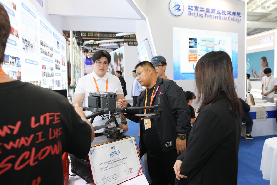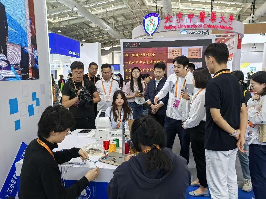 今年北工院線下展廳與往年相比又有了創(chuàng)新與亮點(diǎn),除了展廳展示墻及和海外教學(xué)專業(yè)標(biāo)準(zhǔn)、專業(yè)教材、國(guó)別研究報(bào)告等實(shí)物展示之外,還將北工院優(yōu)勢(shì)專業(yè)、特色職業(yè)技能項(xiàng)目做了精彩的場(chǎng)地空間展示,包括智能機(jī)器人操控、國(guó)家級(jí)非遺玉雕項(xiàng)目、珠寶編繩以及“互聯(lián)網(wǎng)+”創(chuàng)新創(chuàng)業(yè)大賽國(guó)賽獲獎(jiǎng)項(xiàng)目等優(yōu)質(zhì)成果的展出,我校電商直播專業(yè)的學(xué)生也全程積極參與進(jìn)來(lái),對(duì)服貿(mào)會(huì)盛況和我校辦學(xué)成果展示進(jìn)行了現(xiàn)場(chǎng)直播,精彩紛呈,趣味十足,收獲了很高的點(diǎn)擊率,也引來(lái)無(wú)數(shù)參觀者駐足觀看,成為教育專題展區(qū)的一大特色。