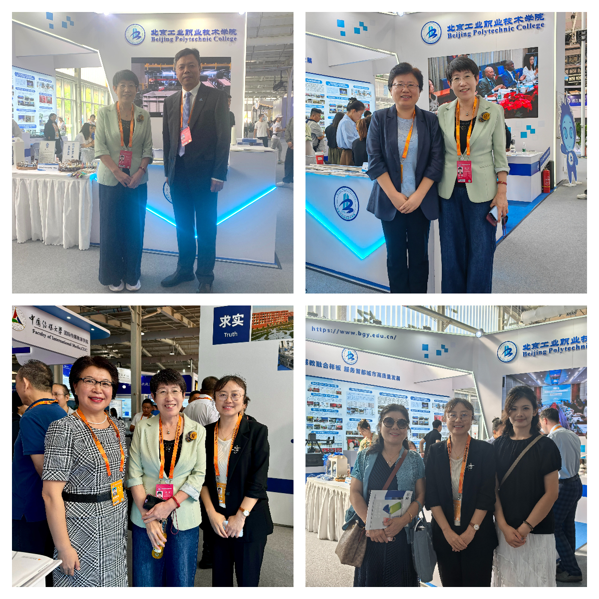 國(guó)務(wù)院部委領(lǐng)導(dǎo)、北京市副市長(zhǎng)馬駿、北京市委教工委副書(shū)記、北京市教育委員會(huì)主任李奕、北京市教委副主任魏旭斌、北京市紀(jì)委市監(jiān)委駐市委教育工委紀(jì)檢監(jiān)察組組長(zhǎng)易帥東、北京市教育國(guó)際交流協(xié)會(huì)會(huì)長(zhǎng)黃侃、北京市教委國(guó)際處董川處長(zhǎng)、教委國(guó)際處四級(jí)調(diào)研員劉皓等多位領(lǐng)導(dǎo)蒞臨我校展位,國(guó)家教育行政學(xué)院高校校長(zhǎng)培訓(xùn)班一行70人等觀看了我校職業(yè)技能展示,高度肯定了我校國(guó)際化特色辦學(xué)成果并提出指導(dǎo)意見(jiàn),充分肯定了我校近年來(lái)在“雙高”建設(shè)中取得的成績(jī),以及在國(guó)際化相關(guān)工作中取得的豐碩成果,表達(dá)了鼓勵(lì)與支持開(kāi)展“中文+職業(yè)技能”相關(guān)領(lǐng)域工作的意愿,并囑托我校要以教育家的情懷,辦好讓人民、讓企業(yè)滿意的教育,以職業(yè)教育優(yōu)勢(shì)服務(wù)國(guó)家共建“一帶一路”,服務(wù)國(guó)際產(chǎn)能合作。