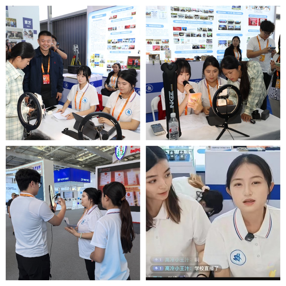 電商專業(yè)學(xué)生在展位對(duì)服貿(mào)會(huì)和我校辦學(xué)情況進(jìn)行直播