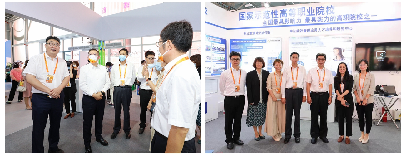 原教育部副部長、中國職業技術教育學會會長魯昕在北京市教委一級巡視員黃侃以及我校高喜軍書記和周燕副校長的陪同下到我校展位觀展指導