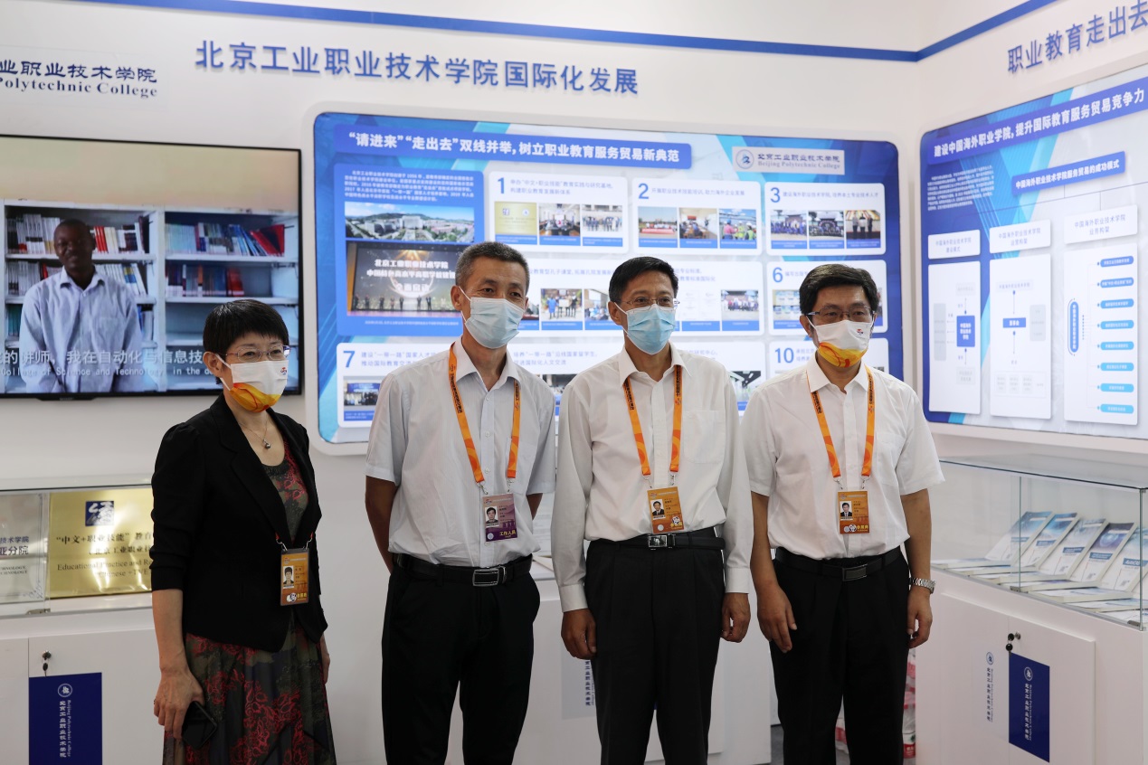 北京市副市長盧彥在北京市教委一級巡視員黃侃的陪同下蒞臨我校展位,安江英校長向其報告職業教育國際化最新成果