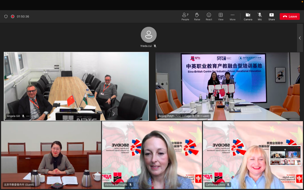4月19日,在北京市教育委員會、英國威爾士政府的共同見證下,我校與英國教育科技協會、英國NPTC學院集團三方共同舉辦了“中英職業教育產教融合型培訓基地”簽約儀式。北京市教委國際合作與交流處副處長胥丹丹線上出席本次簽約儀式,英國威爾士政府代表Susan Jiang、英國教育科技協會副主席Dr. Cas Widdershoven、英國教育科技協會中國區執行主席武印霞線下出席簽約儀式,英國NPTC學院集團總校長兼集團CEO Catherine Lewis、分管高等教育副校長Vicky Burroughs、主管國際事務副校長Steve Rhodes、國際事務學術部總負責Christopher Manley線上出席會議,我校黨委常委、副院長周燕、國際交流合作處處長孟晴、副處長謝麗杲以及相關工作人員一同出席簽約儀式。會議由國際處處長孟晴主持。