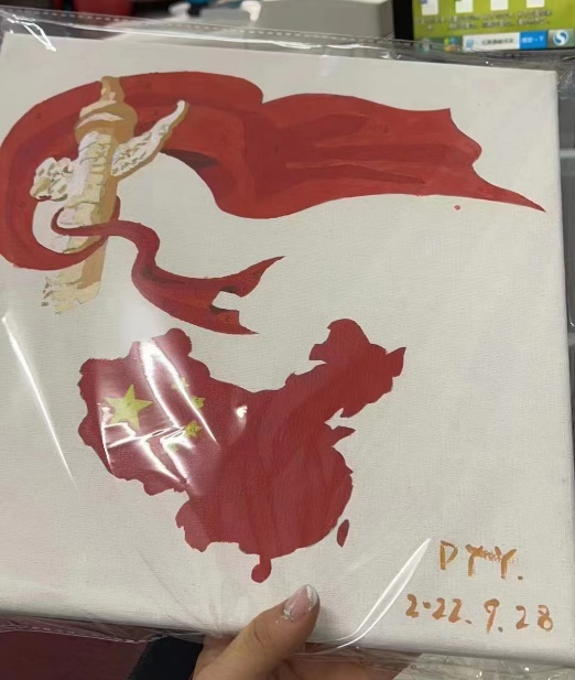 讀者協會精心組織了《習近平和大學生朋友們》主題讀書會,同學們圍坐一起通過閱讀真切感受到了習近平總書記對青年一代的親切關懷和殷切期望,為自己走好人生路指明了正確航向。讀書會后,同學們還開展了繪制紅色油畫的活動,通過畫作慶祝中華人民共和國成立73周年。